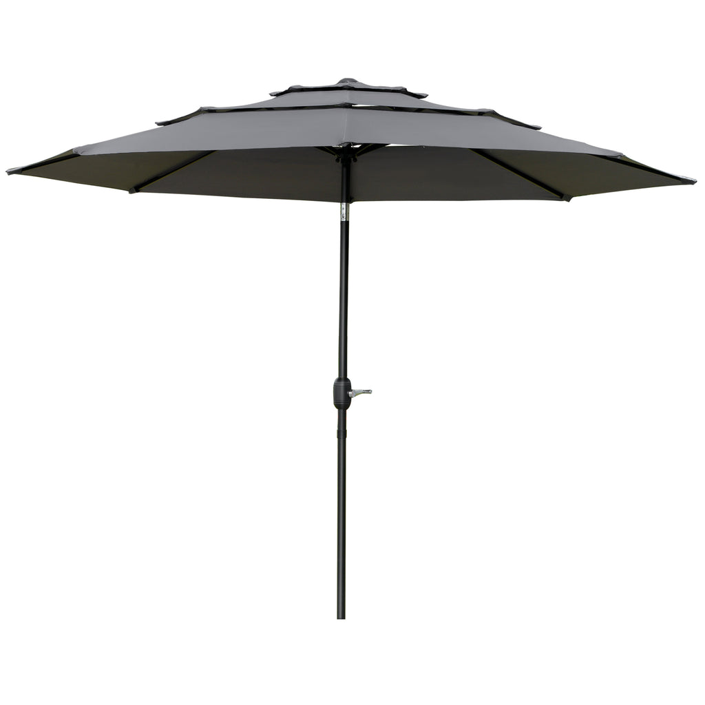 3-Tier Patio Umbrella Shade Market Umbrella with Hand Crank and Tilt - Light Grey
