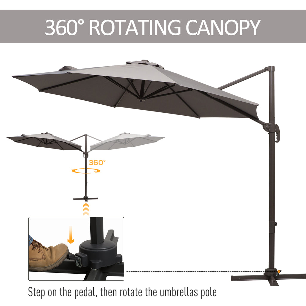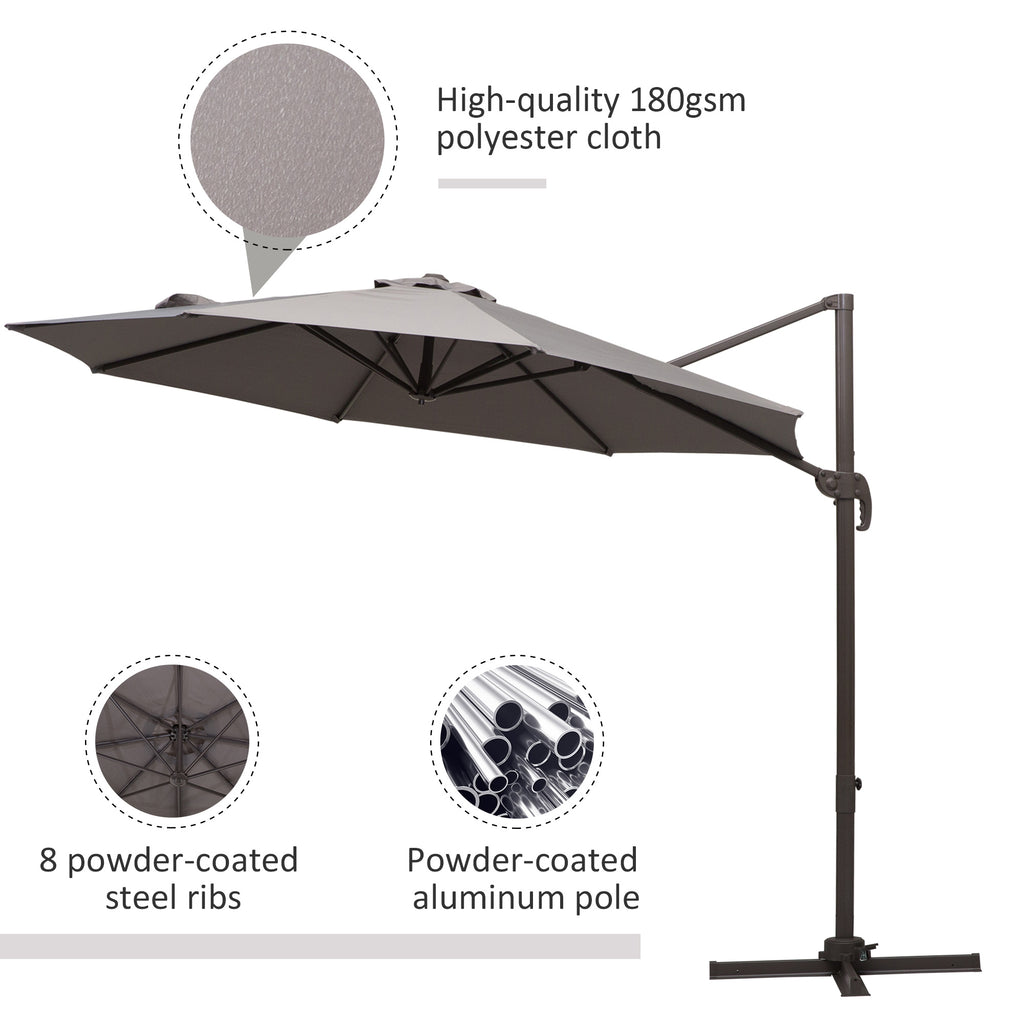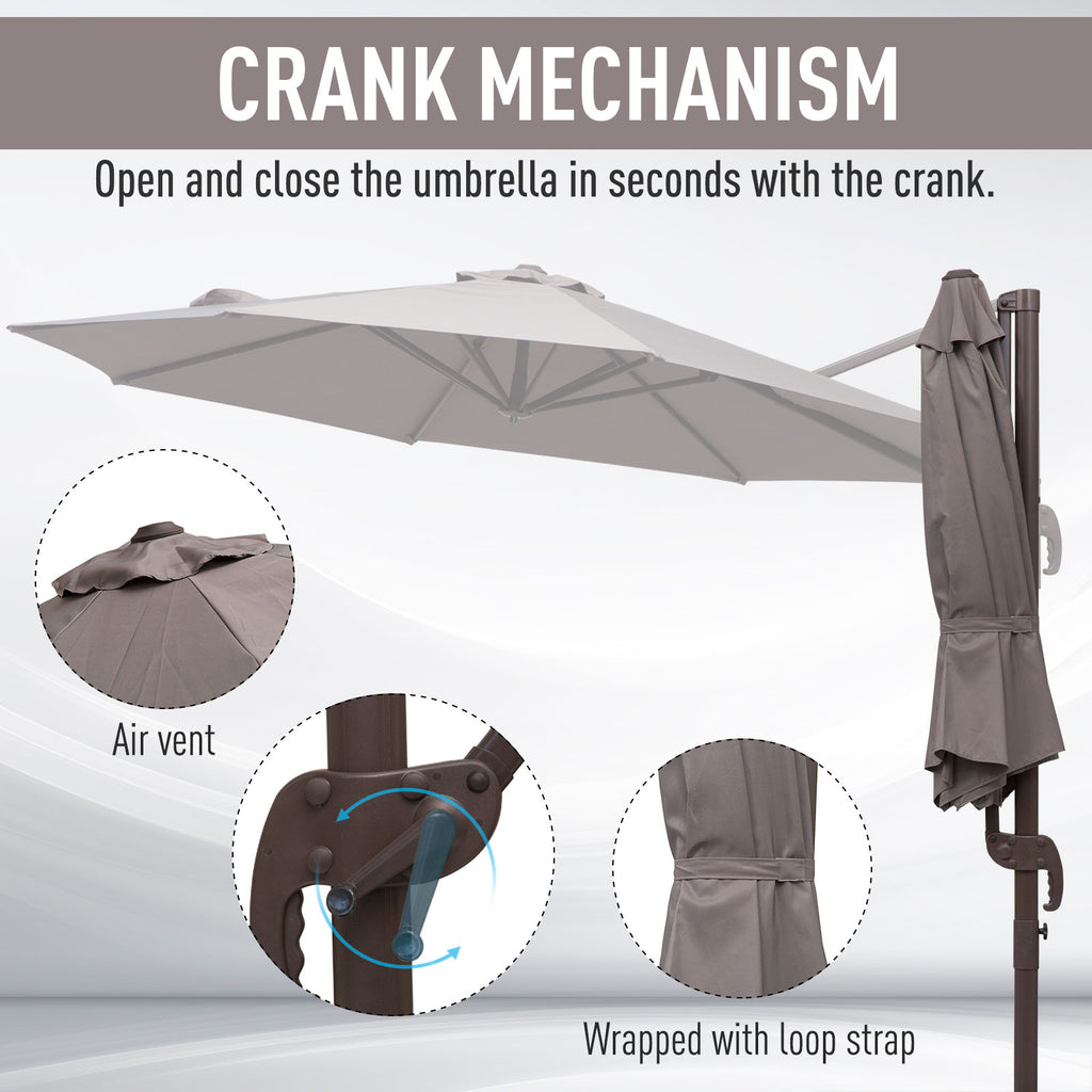 10ft Cantilever Patio Umbrella Offset with 360° Rotation and Crank Open - Grey