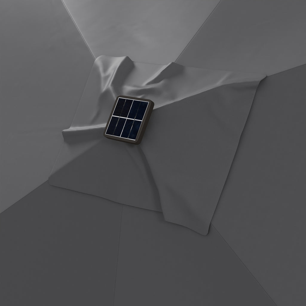 - 20 solar powered white LED lights provide energy-efficient lighting (6 LED lights per long rib and 2 LED lights per short rib)