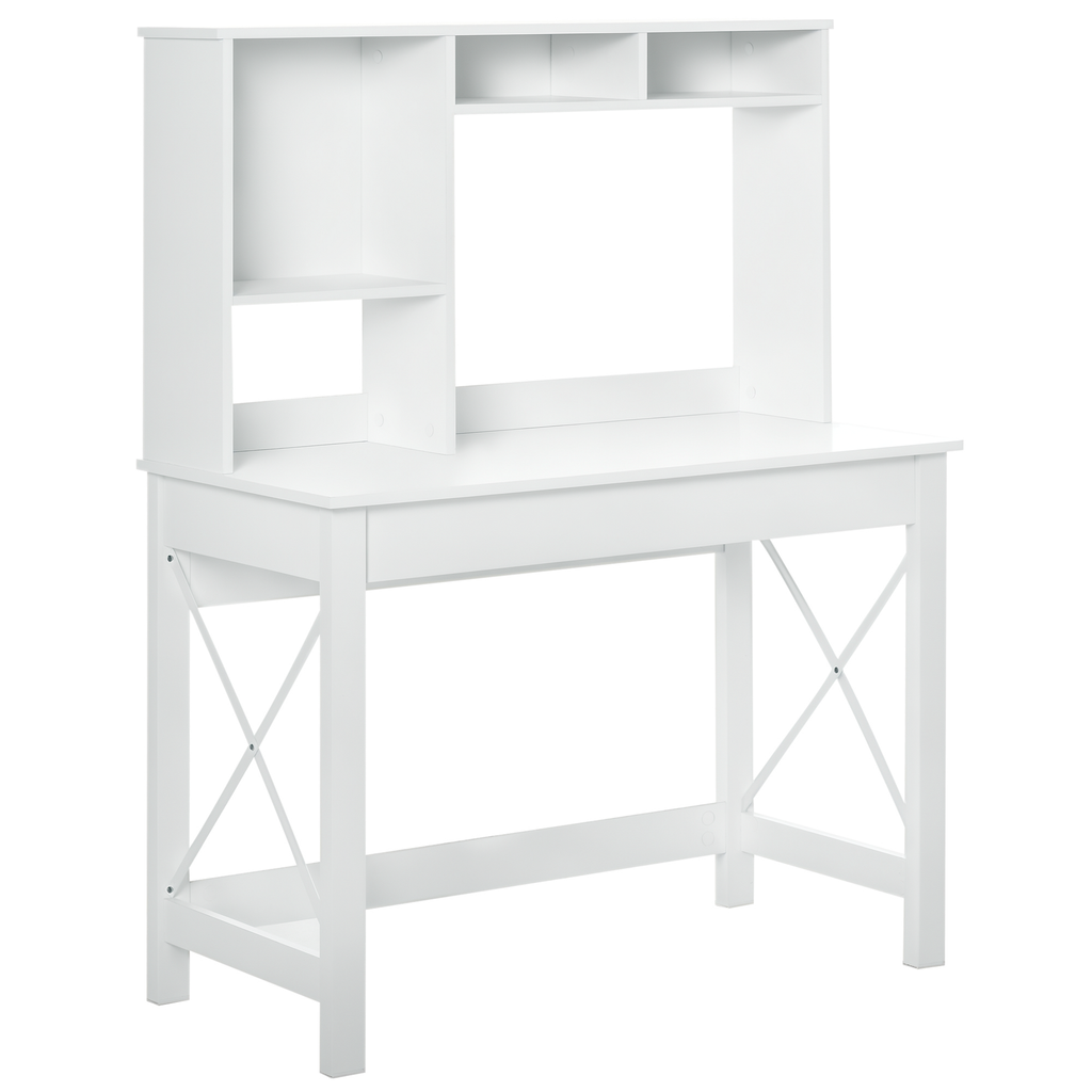 This space-saving computer desk features a dual-function design with integrated shelf storage. Ideal for living rooms, bedrooms, dorms, or home offices, it offers a spacious desktop and side shelves to neatly organize office supplies, books, and decor. Its sturdy frame ensures durability for everyday use. Enhance your workspace or bedroom setup with this practical and stylish desk that improves organization and functionality.