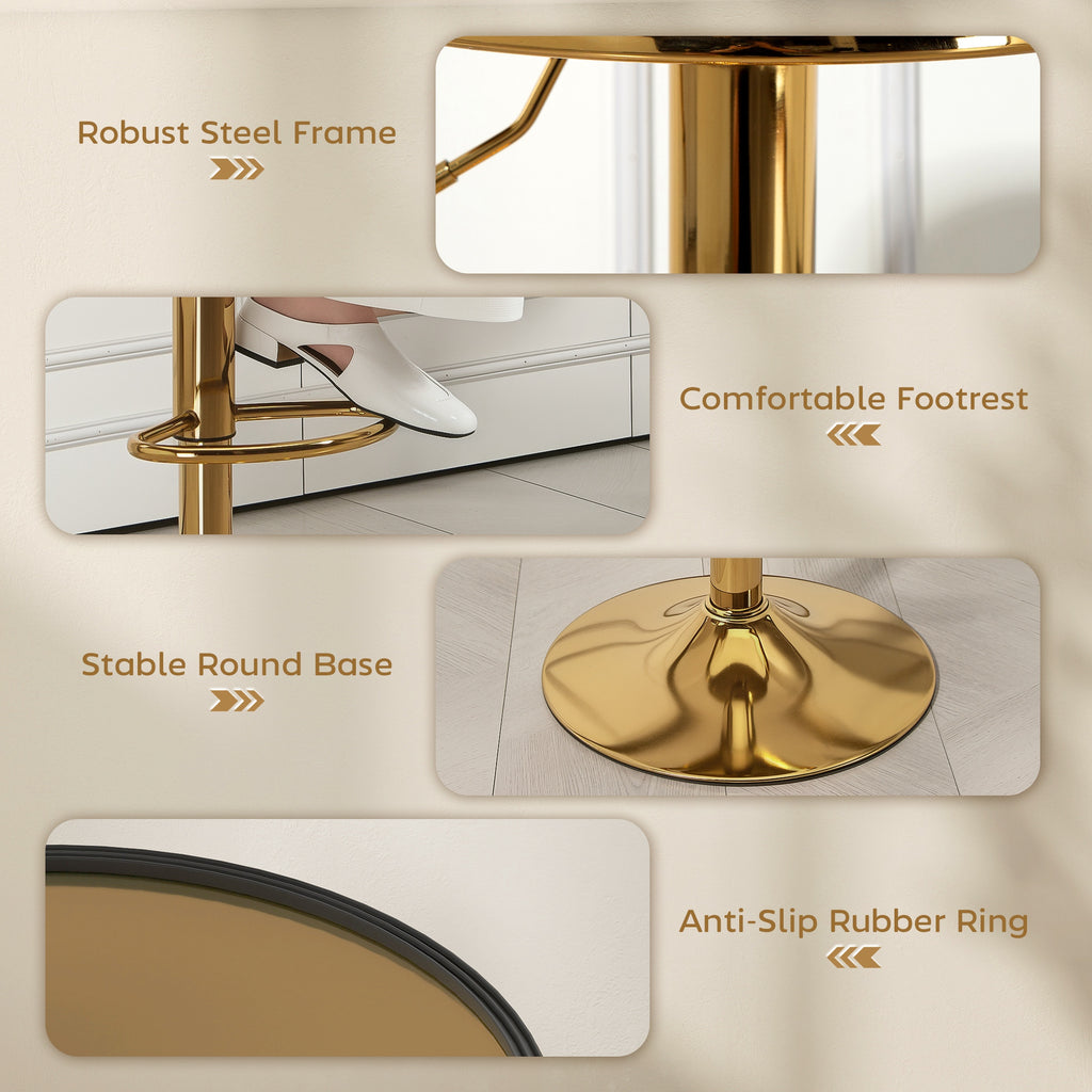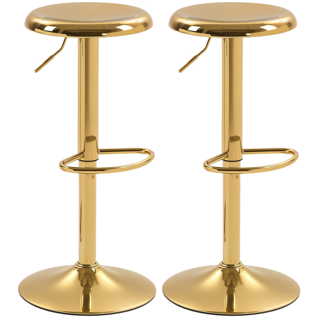 • Set of 2 bar stools with a striking gold finish for an elevated decor look