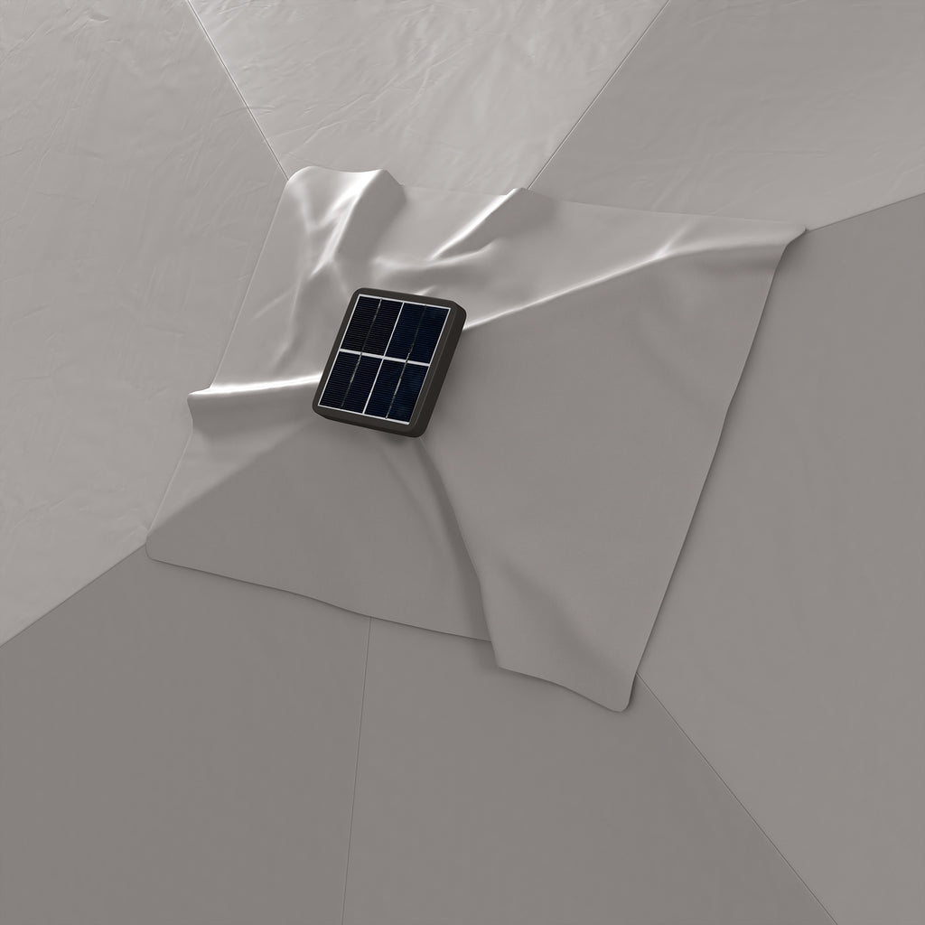 • 20 solar powered white LED lights provide energy-efficient lighting (6 LED lights per long rib and 2 LED lights per short rib)