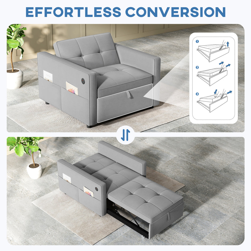 Divena Convertible Sleeper Chair With Adjustable Backrest and USB Charging Port - Grey