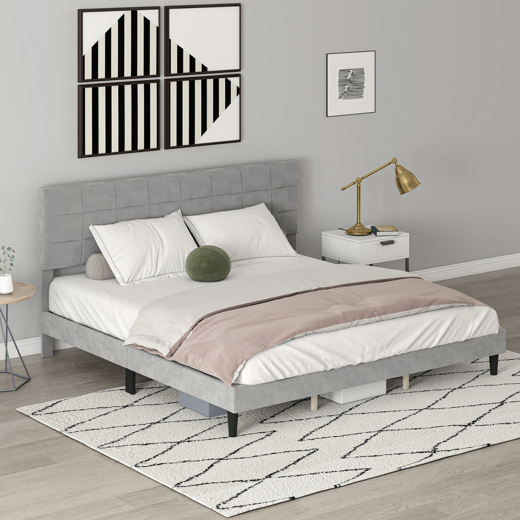 Mara King Size Upholstered Platform Bed Frame with Wood Slats - Grey