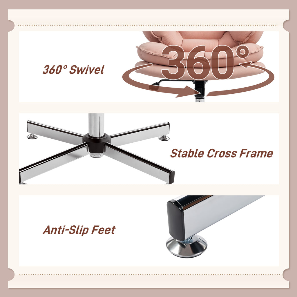 Monflueri Criss Cross Chair with Wide Seat, Leathaire Upholstery, Tilting and Stationary Swivel Base - Pink