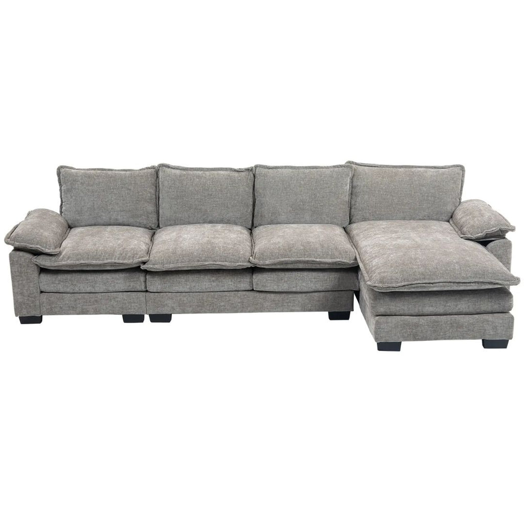 Experience ultimate comfort and modern style with The Shadow Creek L-Shaped Reversible Sectional Sofa. This large 120-inch wide 4-seat couch, features an integrated reversible chaise lounge and luxurious chenille upholstery, it's designed to be the centerpiece of any living room. Relax and unwind into plush back cushions and a double-layer seat cushion with a spring pack for exceptional support and relaxation. With its generous deep seat deck and thick padded cushions, the Shadow Creek Sectional Sofa provides optimal lounging comfort. It's robust composite board frame ensures lasting durability, while its sleek design seamlessly complements contemporary living spaces.