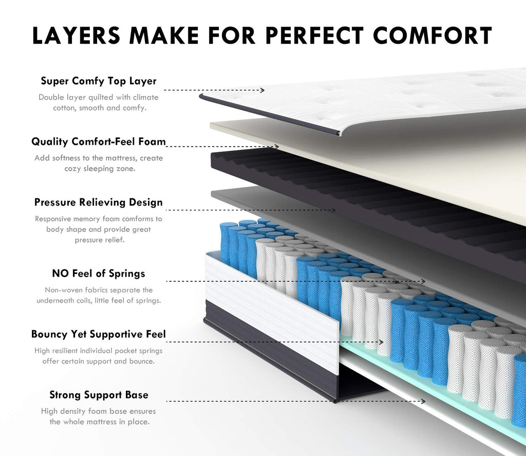 Luxury quilting ticking is putting the layer together contributes to the performance, feel, and durability of the mattress.