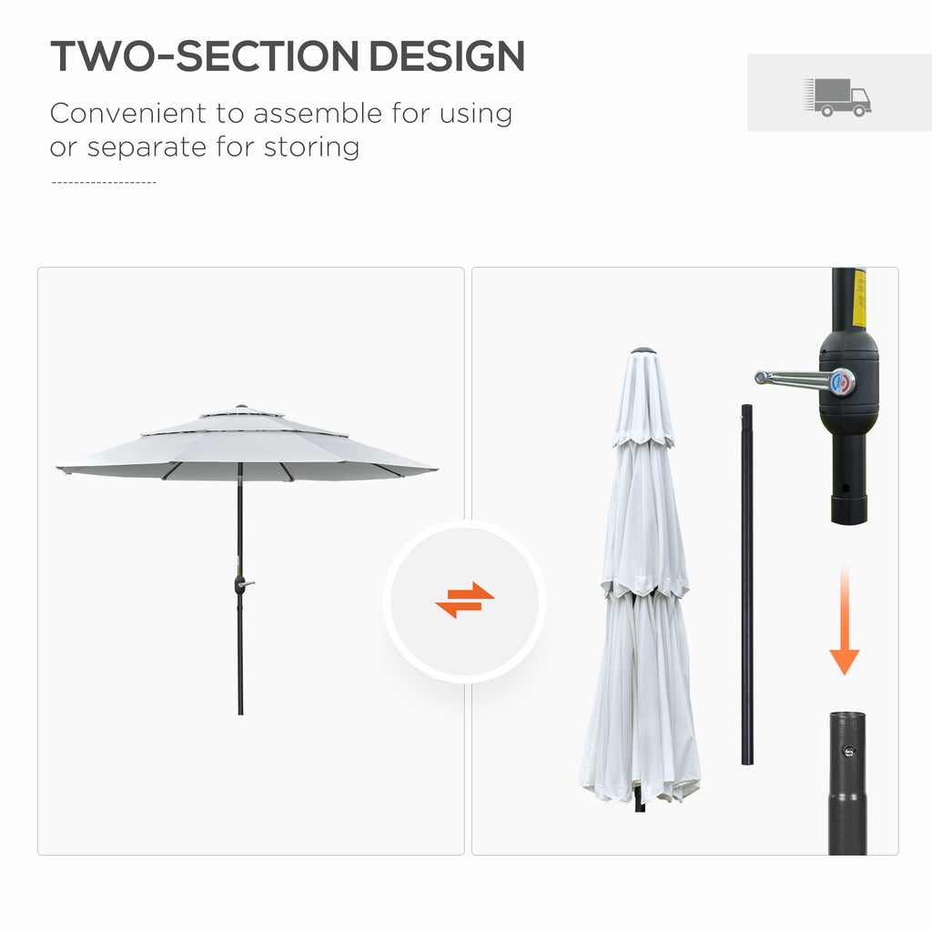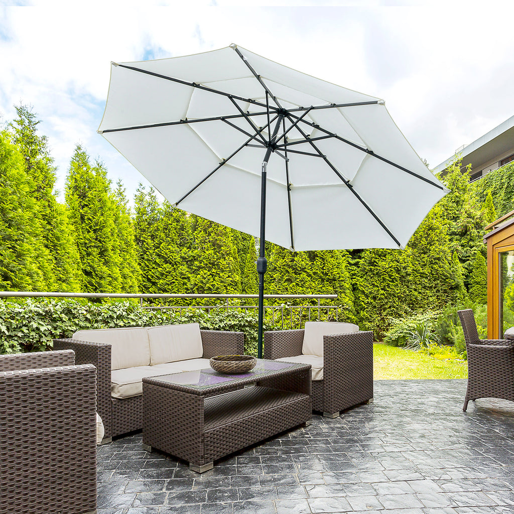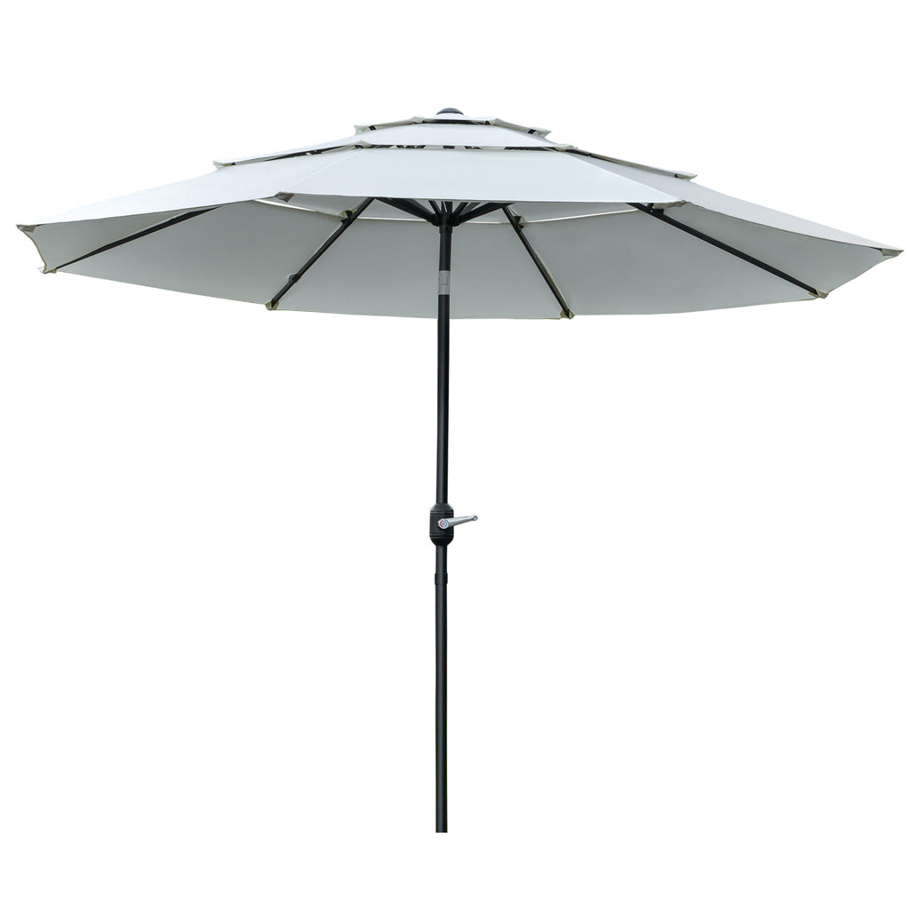 3-Tier Patio Umbrella Shade Market Umbrella with Hand Crank and Tilt - Cream White