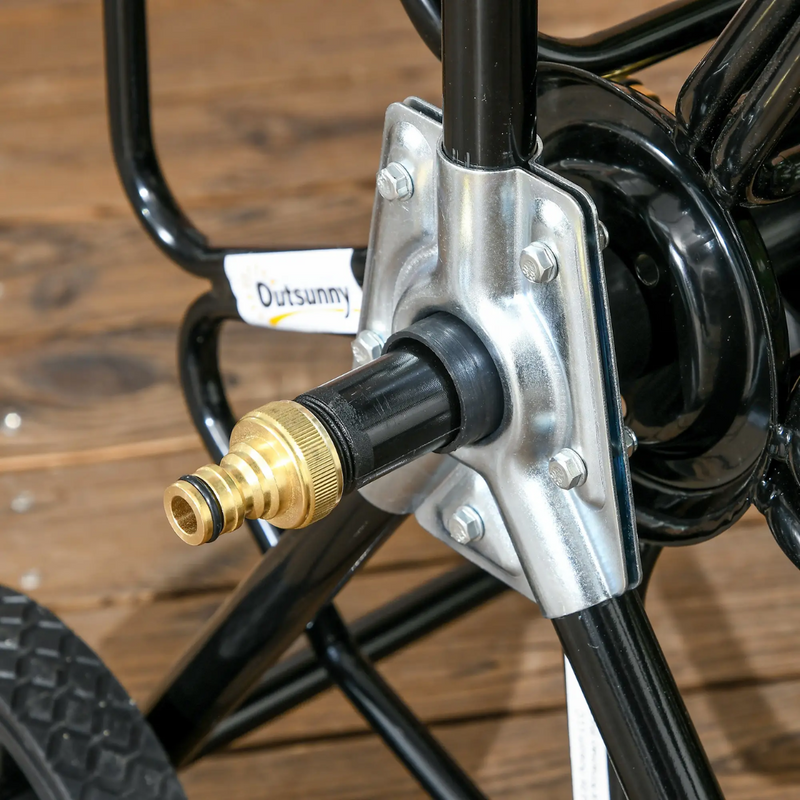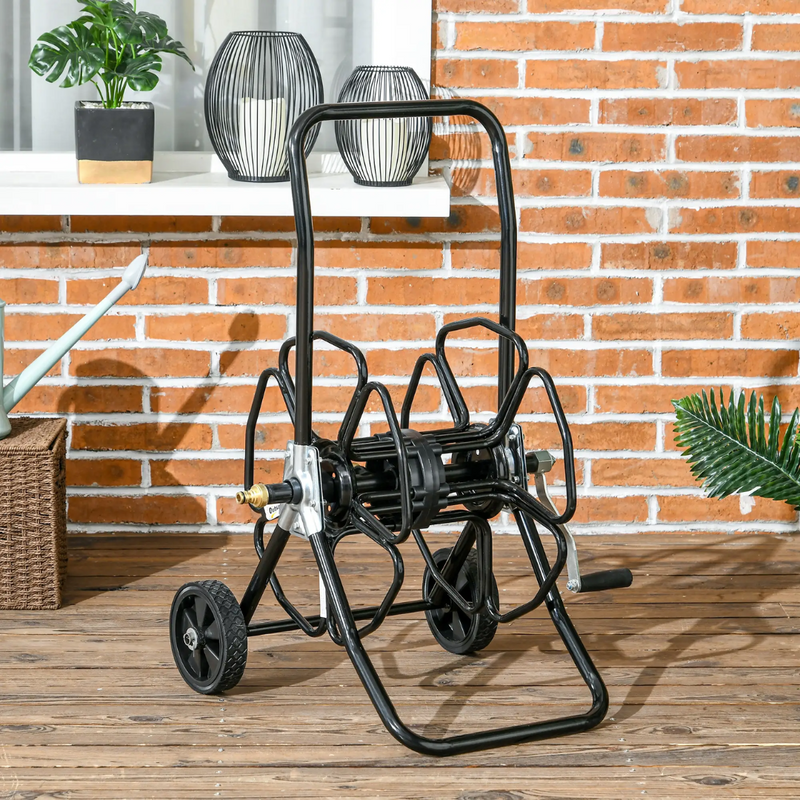 Garden Hose Reel Cart with Wheels and Manual Winding Crank - Black